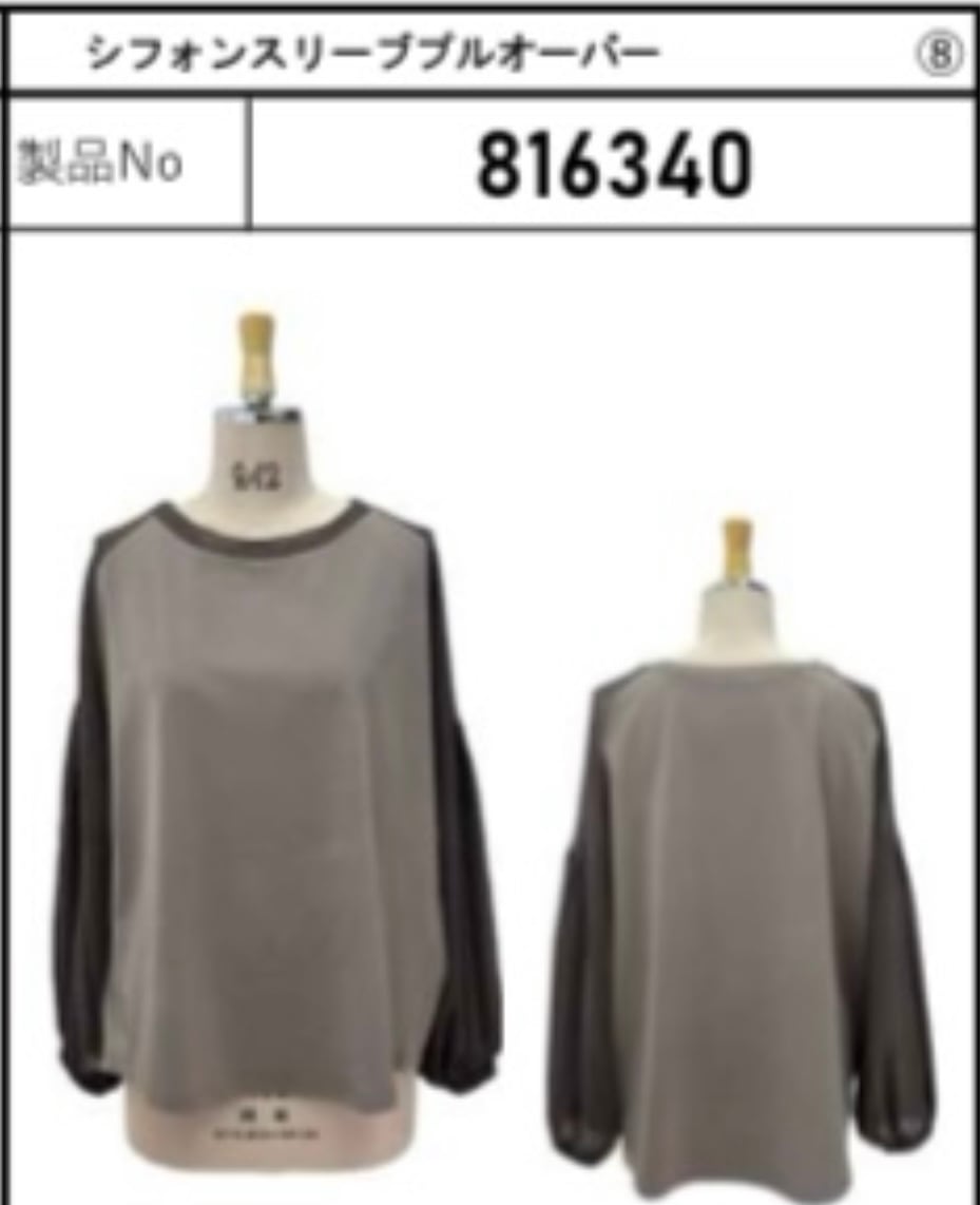 ayane816340シフォンスリーブプルオーバー